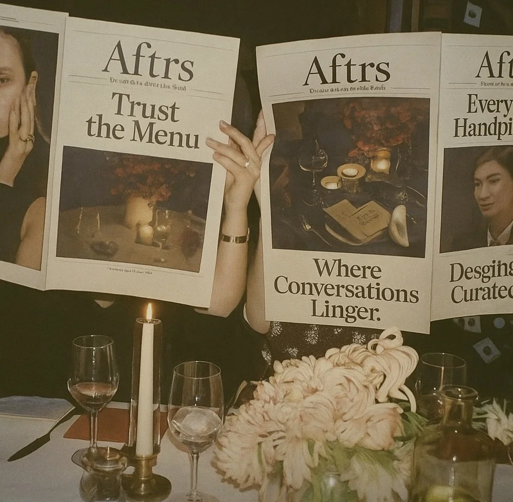 Aftrs is a dinner club like no other — every table is handpicked, every guest chosen for the spark they bring. Our menus are rooted in memory, in the stories and experiences that shape us. Each dinner is an invitation to share what matters most: the food that surprised us, the conversations that stayed with us, and the moments that linger long after the night ends.